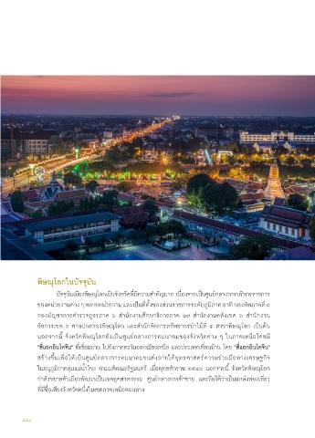 ปัจจุบันเมืองพิษณุโลกเป็นจังหวัดท่มีควำมส�ำคัญมำก เน่องจำกเป็นศูนย์กลำงกำรบริหำรรำชกำร