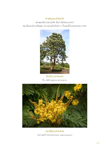 คาขวัญประจาจังหวัด � � ิ พระพุทธชินรำชงำมเลิศ ถ่นก�ำเนิดพระนเรศวร � � � สองฝั่งน่ำนล้วนเรือนแพ หวำนฉ่ำแท้กล้วยตำก ถ้ำและน้ำตกหลำกตระกำรตำ � ต้นไม้ประจาจังหวัด ปีบ (Millingtonia hortensis) ดอกไม้ประจาจังหวัด � ดอกนนทรี (Peltophorum pterocarpum) ๑๔๗