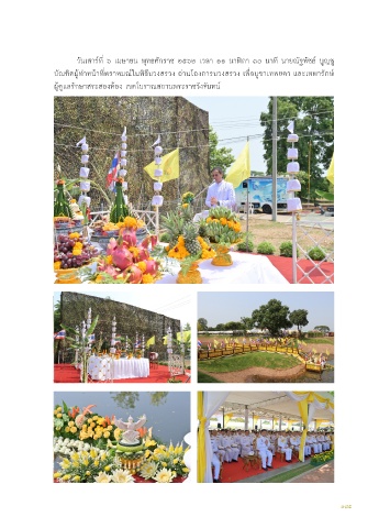 ี ู วันเสำร์ท่ ๖ เมษำยน พุทธศักรำช ๒๕๖๒ เวลำ ๑๑ นำฬิกำ ๓๐ นำที นำยณัฐพัชธ์ บูญช ื ี บัณฑิตผู้ท�ำหน้ำท่พรำหมณ์ในพิธีบวงสรวง อ่ำนโองกำรบวงสรวง เพ่อบูชำเทพยดำ และเทพำรักษ์ ผู้ดูแลรักษำสระสองห้อง เขตโบรำณสถำนพระรำชวังจันทน์ ๑๘๕