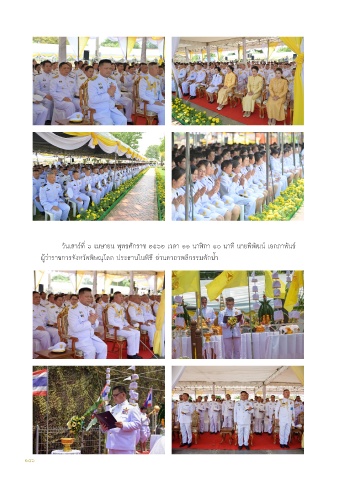 วันเสำร์ที่ ๖ เมษำยน พุทธศักรำช ๒๕๖๒ เวลำ ๑๑ นำฬิกำ ๔๐ นำที นำยพิพัฒน์ เอกภำพันธ์ � ผู้ว่ำรำชกำรจังหวัดพิษณุโลก ประธำนในพิธี อ่ำนคำถำพลีกรรมตักน้ำ ๑๘๖