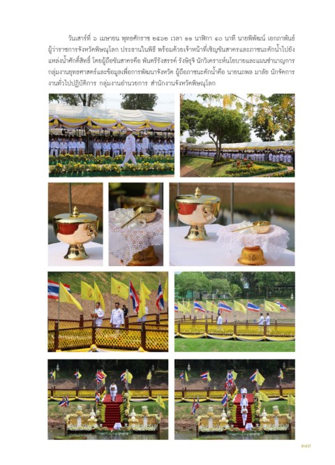 ผู้ว่ำรำชกำรจังหวัดพิษณุโลก ประธำนในพิธี พร้อมด้วยเจ้ำหน้ำท่เชิญขันสำครและภำชนะตักน้ำไปยัง