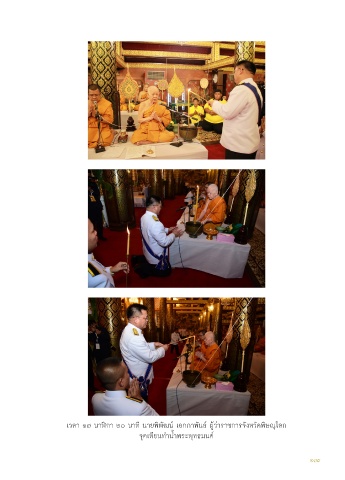 เวลำ ๑๗ นำฬิกำ ๒๐ นำที นำยพิพัฒน์ เอกภำพันธ์ ผู้ว่ำรำชกำรจังหวัดพิษณุโลก � จุดเทียนท�ำน้ำพระพุทธมนต์ ๒๗๙
