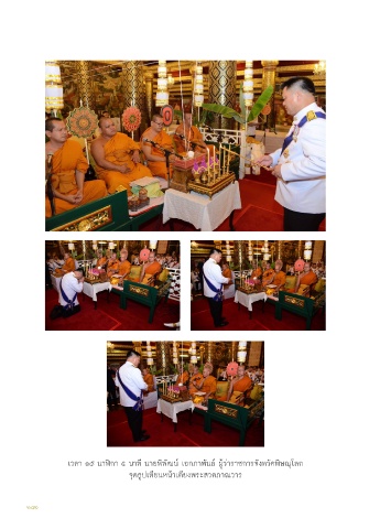 เวลำ ๑๙ นำฬิกำ ๕ นำที นำยพิพัฒน์ เอกภำพันธ์ ผู้ว่ำรำชกำรจังหวัดพิษณุโลก จุดธูปเทียนหน้ำเตียงพระสวดภำณวำร ๒๘๒