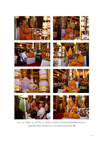 เวลำ ๑๙ นำฬิกำ ๑๕ นำที ถึง ๒๒ นำฬิกำ พระสงฆ์เถรำจำรย์และพระสงฆ์สวดภำณวำร ผลัดเปลี่ยนกันนั่งเจริญจิตภำวนำ และสวดภำณวำรจนเสร็จพิธี ๒๘๕