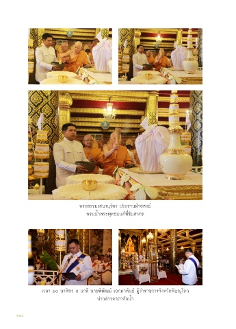 พระธรรมเสนำนุวัตร ประธำนฝ่ำยสงฆ์ � ี พรมน้ำพระพุทธมนต์ท่ขันสำคร เวลำ ๑๐ นำฬิกำ ๕ นำที นำยพิพัฒน์ เอกภำพันธ์ ผู้ว่ำรำชกำรจังหวัดพิษณุโลก � น�ำกล่ำวคำถำตักน้ำ ๒๙๔