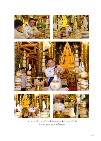 เวลำ ๑๐ นำฬิกำ ๘ นำที นำยพิพัฒน์ เอกภำพันธ์ ประธำนในพิธี ตักน�้ำอภิเษกจำกขันสำครใส่คนโท ๒๙๕