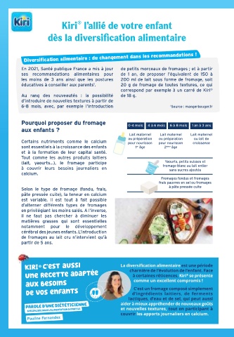 Diversification alimentaire : du changement dans les recommandations ! y arriver ? Au goûter : 1 portion de Kiri (100 mg de calcium)