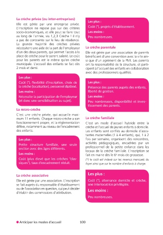 Nécessite la participation de l’employeur Les moins : Elle peut être gérée par la mairie, une entreprise moins de 6 ans). Elles accueillent les enfants