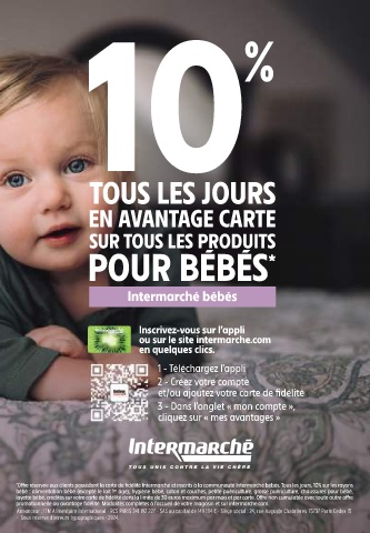 *Offre réservée aux clients possédant la carte de fidélité Intermarché et inscrits à la communauté Intermarché bébés. Tous les jours, 10% sur les rayons