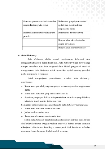 c. Data item yang dapat diakses oleh pemakai dan jenis akses yang diijinkan,