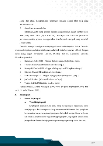 kunci yang dapat berukuran 128-bit, 192-bit, 256-bit. Algoritma Camellia