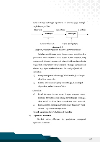 disebut juga algoritma kunci rahasia (secret-key algorithm).