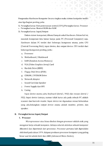 Pengenalan Hardware Komputer Secara ringkas maka sistem komputer terdiri