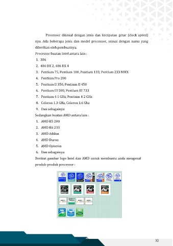 Processor dikenal dengan jenis dan kecepatan getar (clock speed)