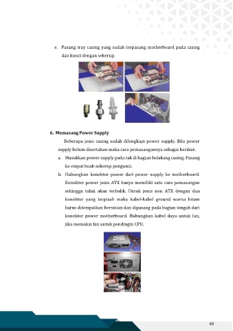 e. Pasang tray casing yang sudah terpasang motherboard pada casing