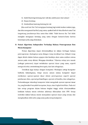 pemrograman. Analoginya sama dengan resep membuat kue. Sebuah resep