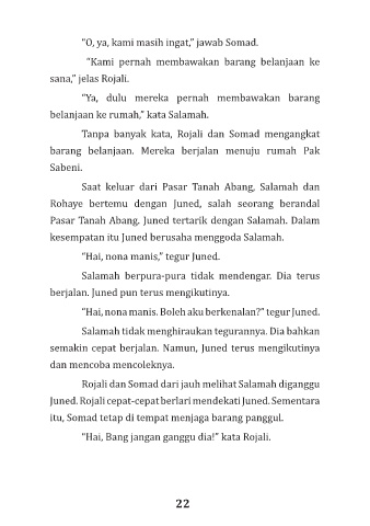 Pasar Tanah Abang. Juned tertarik dengan Salamah. Dalam
