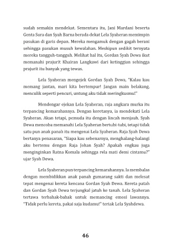 tepat mengenai kereta kencana Gordan Syah Dewa. Kereta patah