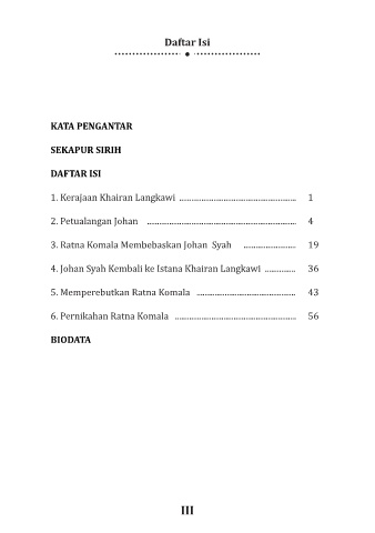 4. Johan Syah Kembali ke Istana Khairan Langkawi ............... 36