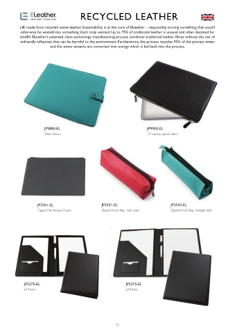 landfill. ELeather’s patented clean technology manufacturing process combines traditional leather fibres without the use of