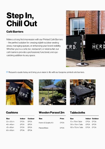 Request a quote today and bring your vision to life with our bespoke printed cafe barriers.