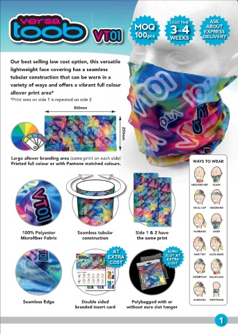 100% Polyester Seamless tubular Side 1 & 2 have HAIRBAND BIKER