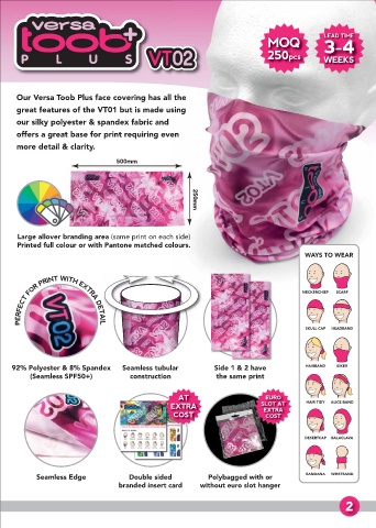92% Polyester & 8% Spandex Seamless tubular Side 1 & 2 have HAIRBAND BIKER