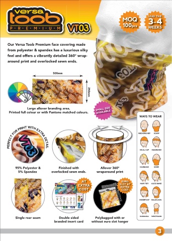 Single rear seam Double sided Polybagged with or BANDANA WRISTBAND