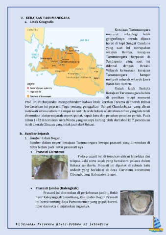 Prof. Dr. Poebatjaraka memperkirakan bahwa letak keraton Taruma di daerah Bekasi