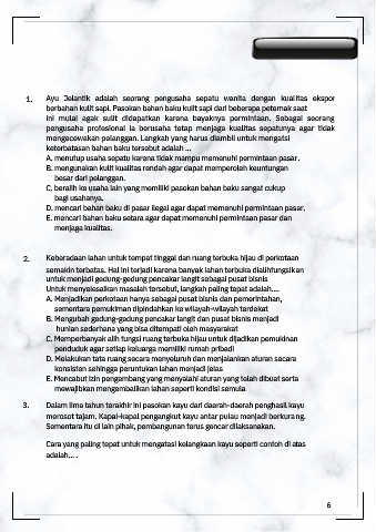 1. Ayu Jelantik adalah seorang pengusaha sepatu wanita dengan kualitas ekspor