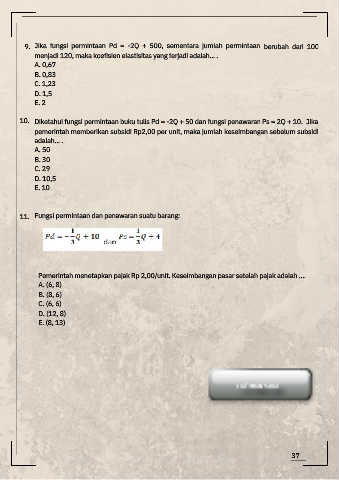 9. Jika fungsi permintaan Pd = -2Q + 500, sementara jumlah permintaan berubah dari 100