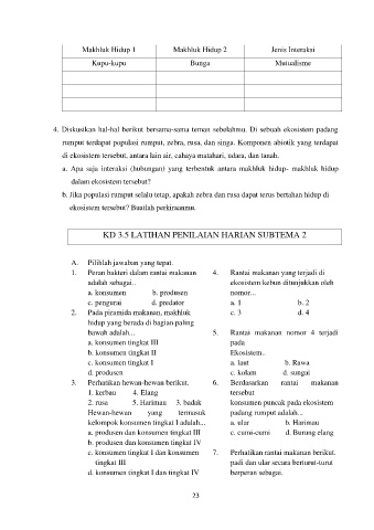 4. Diskusikan hal-hal berikut bersama-sama teman sebelahmu. Di sebuah ekosistem padang