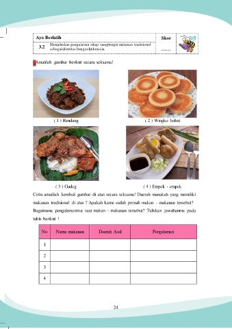 Menjelaskan pengalaman sikap menghargai makanan tradisional