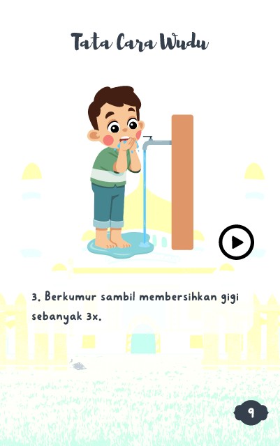 Tata Cara Wudu 3. Berkumur sambil membersihkan gigi sebanyak 3x. 9