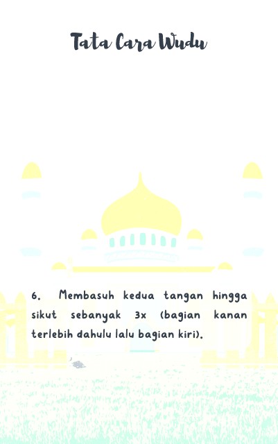Tata Cara Wudu 6. Membasuh kedua tangan hingga sikut sebanyak 3x (bagian kanan terlebih dahulu lalu bagian kiri).