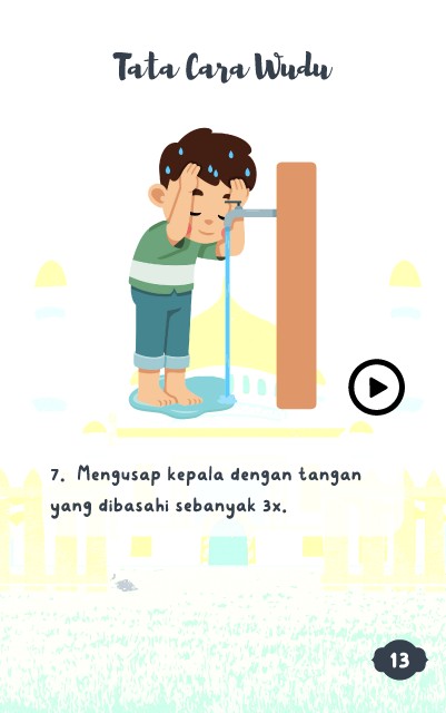 Tata Cara Wudu 7. Mengusap kepala dengan tangan yang dibasahi sebanyak 3x. 13