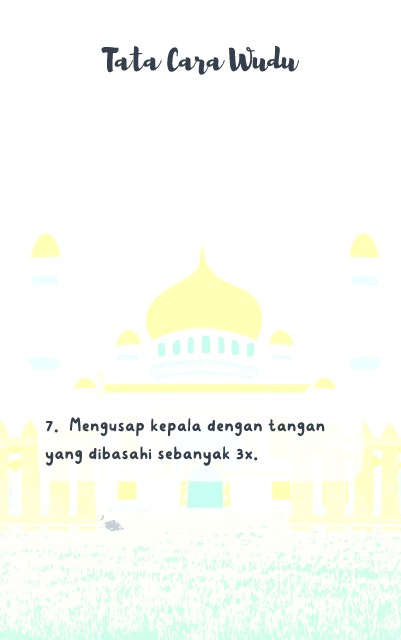 Tata Cara Wudu 7. Mengusap kepala dengan tangan yang dibasahi sebanyak 3x.