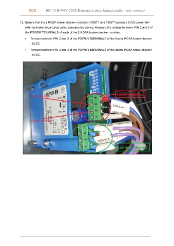 • Tension between PIN 2 and 3 of the POWER TERMINALS of the lateral ROBA brake-checker