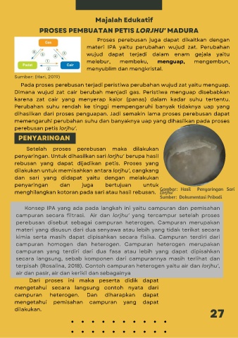 campuran secara filtrasi. Air dan lorjhu' yang tercampur setelah proses