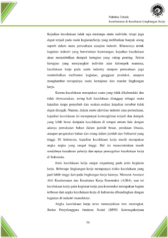 tinggi. Di Indonesia, kejadian kecelakaan kerja masih merupakan