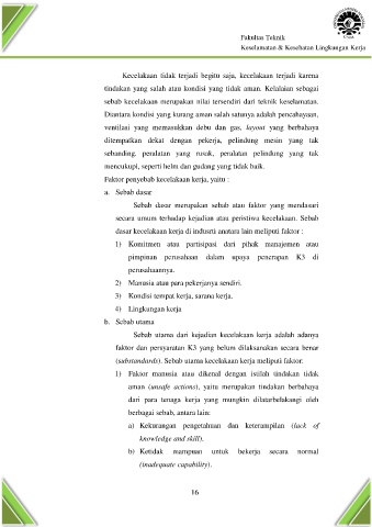 (substandards). Sebab utama kecelakaan kerja meliputi faktor:
