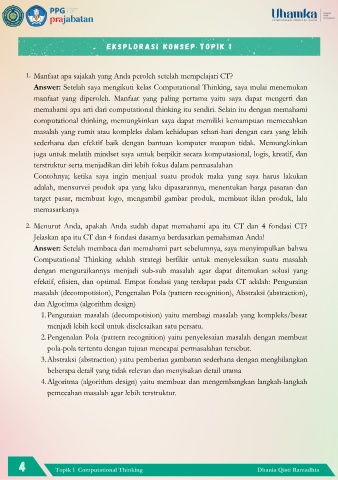 2. Menurut Anda, apakah Anda sudah dapat memahami apa itu CT dan 4 fondasi CT?