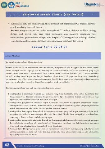 dengan soal literasi yaitu saya dapat memahami dan mengerti bagaimana cara