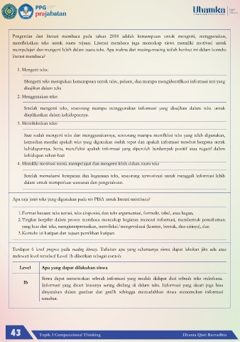 merefleksikan teks untuk suatu tujuan. Literasi membaca juga mencakup siswa memiliki motivasi untuk