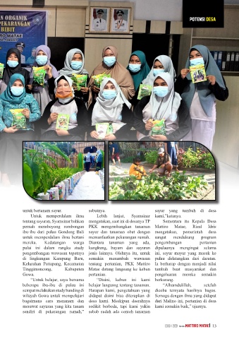 tentang sayuran, Syamsinar bahkan mengatakan, saat ini di desanya TP Sementara itu Kepala Desa