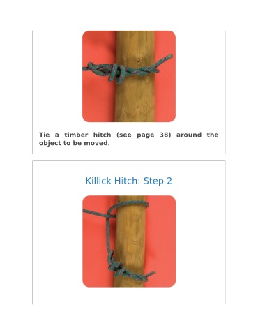 Tie a timber hitch (see page 38) around the object to be moved. Killick Hitch: Step 2