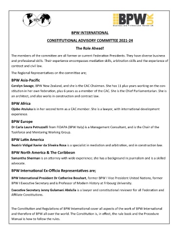 and therefore of BPW all over the world. The Constitution is, in effect, the rule book and the Procedure