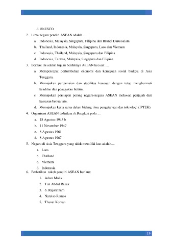2. Lima negara pendiri ASEAN adalah ....