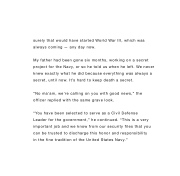 My father had been gone six months, working on a secret project for the Navy, or so he told us when he left. We never knew exactly what he did because everything was always a secret, until now. It’s hard to keep death a secret.