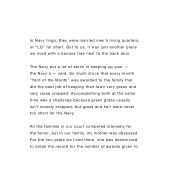 the Navy's — yard. So much stock that every month “Yard of the Month” was awarded to the family that did the best job of keeping their lawn very green and very close cropped. Accomplishing both at the same time was a challenge because green grass usually isn't closely cropped, but grass and hair were never too short for the Navy.
